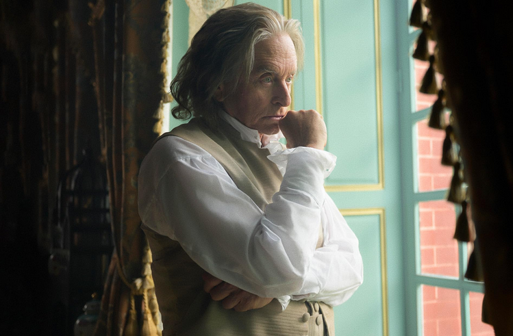 Персонаж в историческом костюме, с прической и макияжем из эпохи просвещения, задумчиво смотрит в окно.