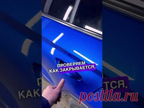 На фотографии изображена рука человека, нажимающая на дверную ручку синего автомобиля. На изображении также присутствует текст, который гласит: "Проверяем, как закрывается."