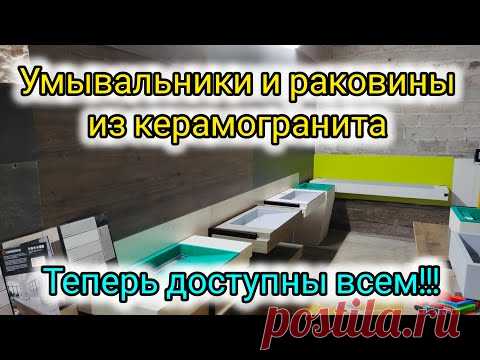 В изображении представлен интерьер санузла с умывальниками и раковинами из керамогранита. В обстановке преобладают темные тона и есть элементы зеленого цвета. Текст на изображении гласит, что теперь эти умывальники и раковины доступны всем, указывая возможно на новую доступность либо предложение от производителя или продавца.