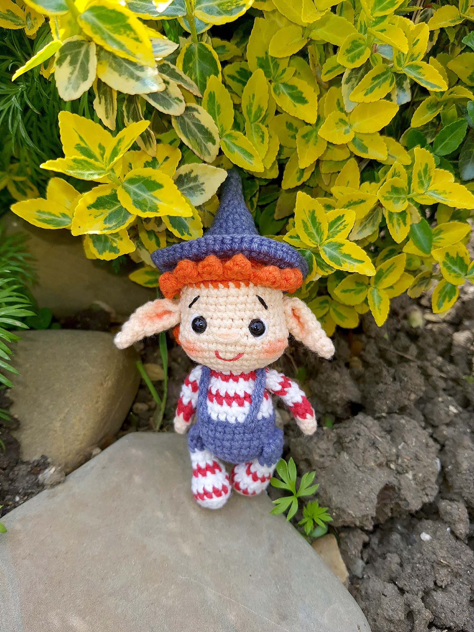 PDF Эльфик крючком. FREE crochet pattern; Аmigurumi toy patterns. Амигуруми схемы и описания на русском. Вязаные игрушки и поделки своими руками #amimore - маленькая кукла в виде эльфа, эльф в шляпе крючком.