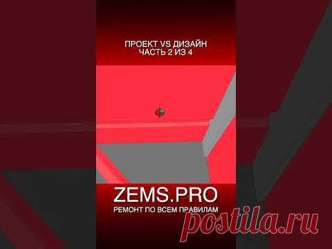 Это изображение кажется рекламным баннером или обложкой для видео или статьи. На нем написано "ПРОЕКТ VS ДИЗАЙН ЧАСТЬ 2 ИЗ 4". Внизу есть логотип "ZEMS.PRO" и слоган "РЕМОНТ ПО ВСЕМ ПРАВИЛАМ". Фон разделен на несколько геометрических сегментов красного и серого цветов.