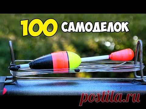 На изображении показан поплавок для рыбалки и некоторые принадлежности, вероятно, представляющие собой часть рыболовной снасти. Надпись "100 самоделок" указывает на контент, посвященный самоделкам или проектам своими руками, и веб-сайт "postila.ru", который, возможно, предлагает соответствующий контент.