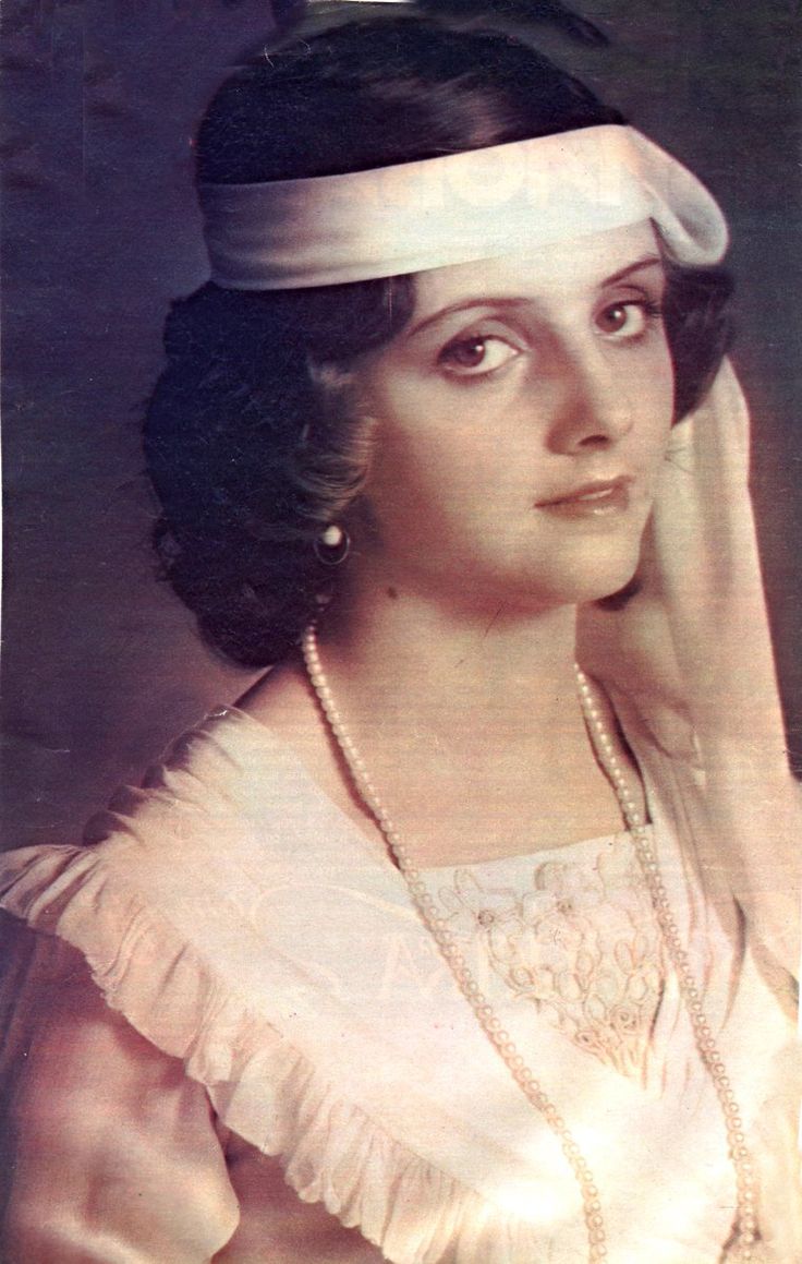 На изображении представлена женщина в элегантном наряде, напоминающем стиль 1920-х годов. У нее короткая стрижка, типичная для той эпохи, она носит жемчужное ожерелье и ленту на голове, что также соответствует моде того времени. Взгляд женщины направлен прямо на зрителя, а ее макияж акцентирует ее глаза и губы.