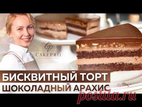 Вкуснейший бисквитный торт. Сливочная карамель с арахисом, шоколадный крем-мусс и ганаш. РЕЦЕПТ