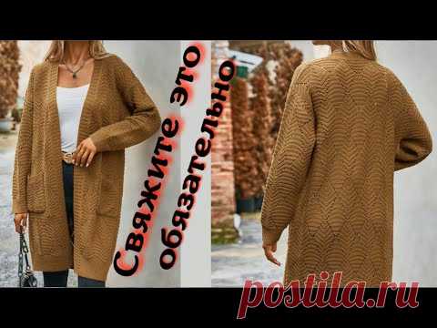 НОВИНКА/ВЯЖЕМ ХИТ СЕЗОНА - КАРДИГАН "РОМБЫ-ЛИСТЬЯ" СПИЦАМИ/Досмотрите Мастер Класс до конца