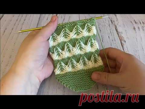 Тапочки-следки на двух спицах без швов // patik modelleri