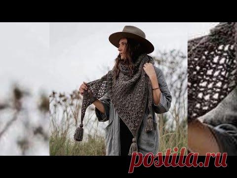 На изображении женщина находится на открытом воздухе. Она носит широкополую шляпу и плечевой шарф с узором. Вокруг неё видны высохшие растения, что может указывать на сельскую местность или поле. Стиль одежды дает ощущение повседневного, расслабленного вида.