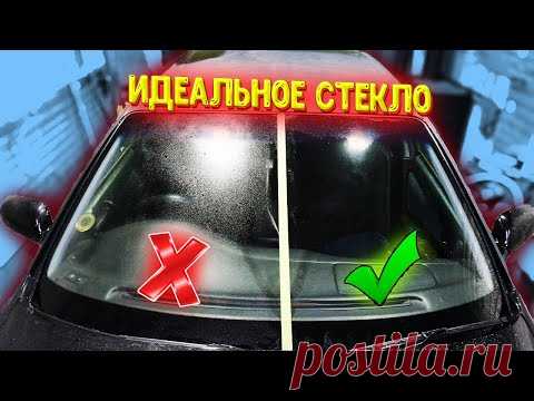 На изображении автомобиль с лобовым стеклом, разделенным на две части. Слева стекло грязное с красной крестиком, справа - чистое со знаком галочки. Надпись на русском языке гласит: "ИДЕАЛЬНОЕ СТЕКЛО". В правом нижнем углу есть ссылка на сайт "positila.ru".