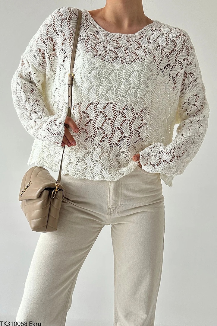 Оигинальный ажурный фантазийный узор на фоне платочной вязки
