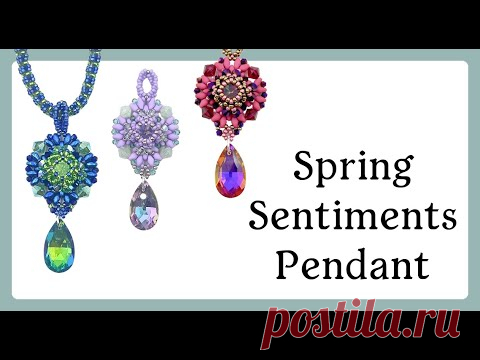 На изображении представлены три разноцветных подвески с камнями. Они спроектированы в разных цветовых гаммах, одна из которых имеет надпись "Spring Sentiments Pendant". Это может указывать на коллекцию украшений, предназначенную для весеннего сезона.