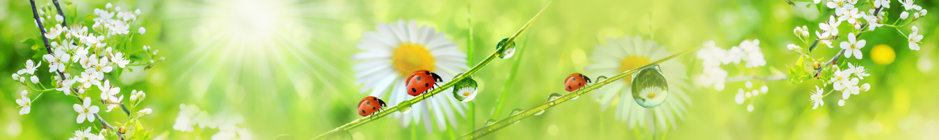 Баннер с натуральным зелёным фоном, ромашками, божьей коровкой и надписью "postila.ru".