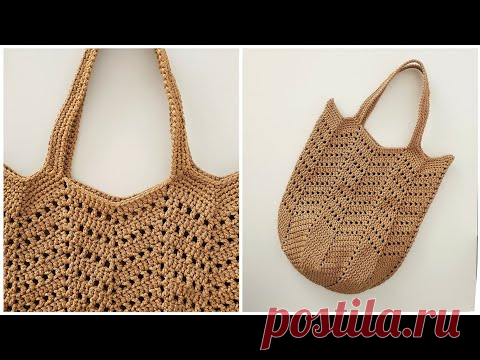 Легкая и вместительная Сумка из шнура с филейным узором | Видео мастер класс | вязание крючком
