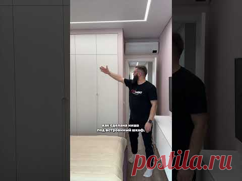 На изображении представлен мужчина в темной футболке, который стоит в коридоре и указывает рукой на потолочный светильник. Коридор современного интерьера с белой дверью и светлыми стенами. На фото также присутствует текст, который может быть частью мема или комментария.