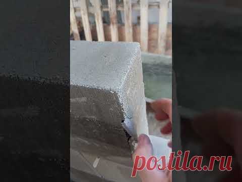 На изображении видна часть бетонного элемента, где есть трещина, и кажется, что кто-то пытается её измерить или оценить. Также видна рука человека и некоторая городская среда в фоне, которая размыта и не в фокусе.