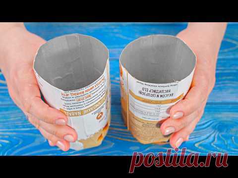 На изображении две руки держат располовиненные бумажные контейнеры, вероятно, от мороженого или бумажные кружки. Фон - синяя деревянная поверхность.