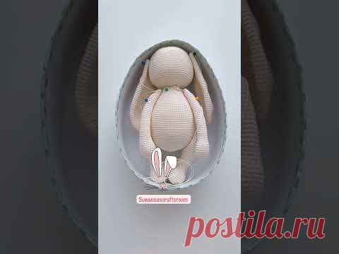 Изображение показывает ручную работу - тканевого кролика внутри разрезанного белого круглого предмета, который выглядит как яйцо. Возможно, это поделка или игрушка, связанная с пасхальной тематикой.