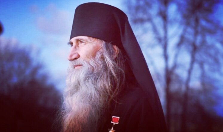 На изображении представлен мужчина в православном монашеском облачении. У него длинная белая борода и волосы, а также он носит черный головной убор. Фон размыт, что может указывать на использование портретного режима съемки.