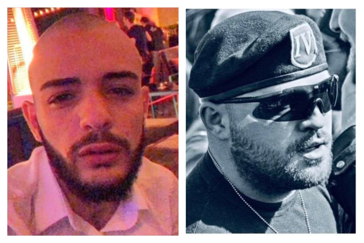 На изображении представлены два мужчины: слева мужчина с короткой стрижкой и бородой, сфотографирован в помещении. Справа - мужчина в темных очках и кепке, снимок сделан в чёрно-белой цветовой гамме.