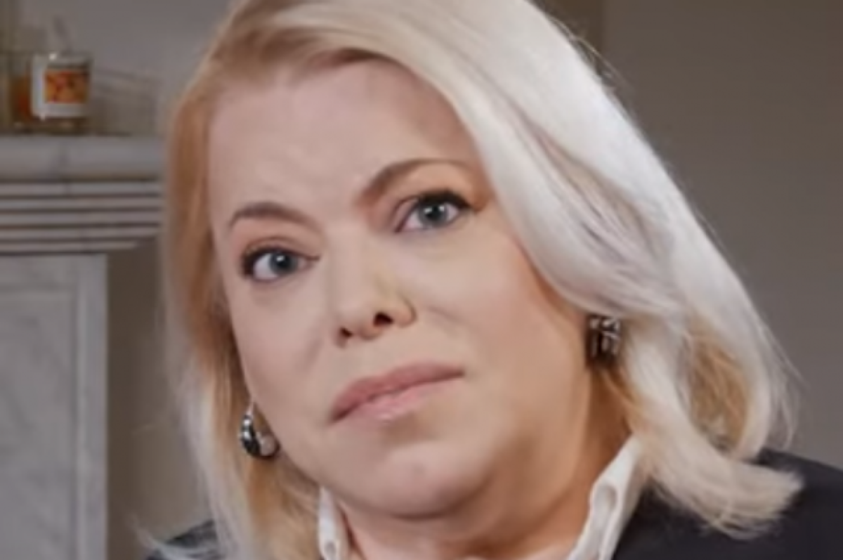 На изображении женщина с блондинистыми волосами. Она кажется серьезной или задумчивой. Носит серьги и черную одежду. Фон размыт, но похож на интерьер комнаты.