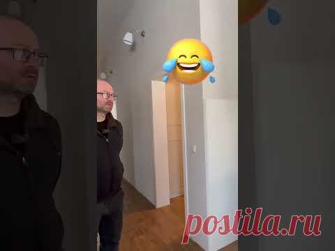 На изображении видны двое мужчин в помещении, смотрящих на плавающий в воздухе смеющийся смайлик с закрытыми глазами и слезами радости. Это выглядит как цифровая наложенная графика или использование дополненной реальности. В правом углу нанесен логотип "positila.ru".