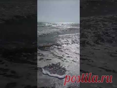 На изображении видны берег моря или океана и волны, бьющие о берег. Небо кажется облачным, что может указывать на пасмурную погоду. Пейзаж выглядит довольно темным и мрачным, возможно, из-за низкого освещения или плохой погоды.