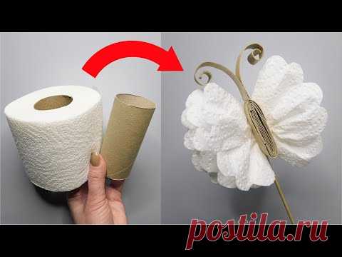 Easy Paper Butterfly Craft DIY 💫 Cheap Home Decor Tutorial 💚 Toilet Paper Roll Recycling Idea