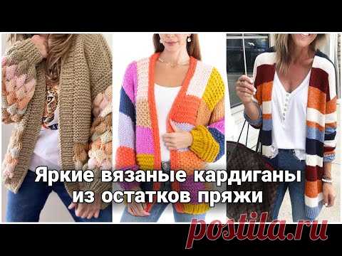 Яркие стильные кардиганы из остатков пряжи - колорблок, пэчворк, бабушкин квадрат. Модное вязание.