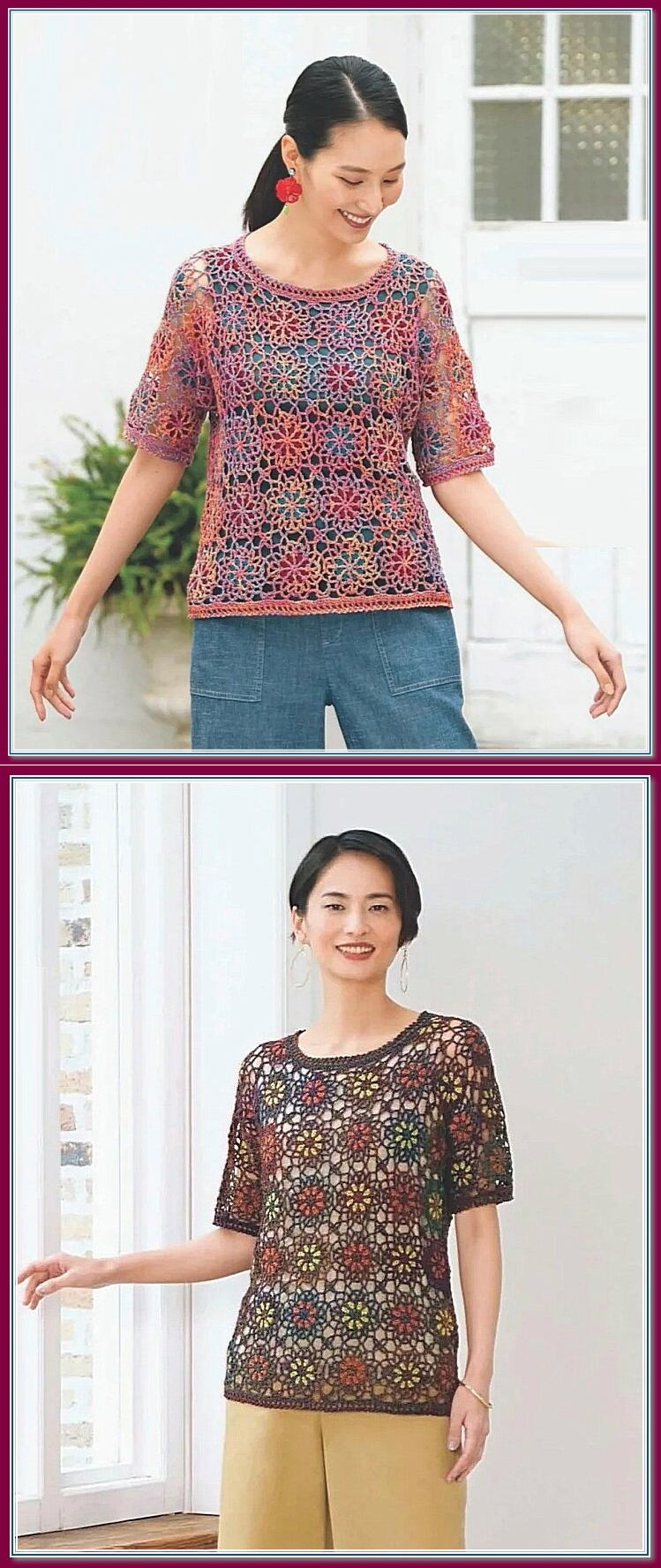 Джемпер с коротким рукавом/ футболка крючком | Вяжем с удовольствием | Дзен