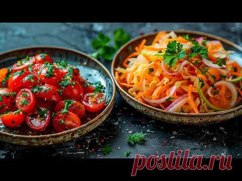 Два овощных салата к шашлыку. Рецепт вкусных салатов.