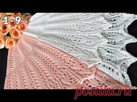 Шаль спицами, очень простая, Крылья чайки, 1-9