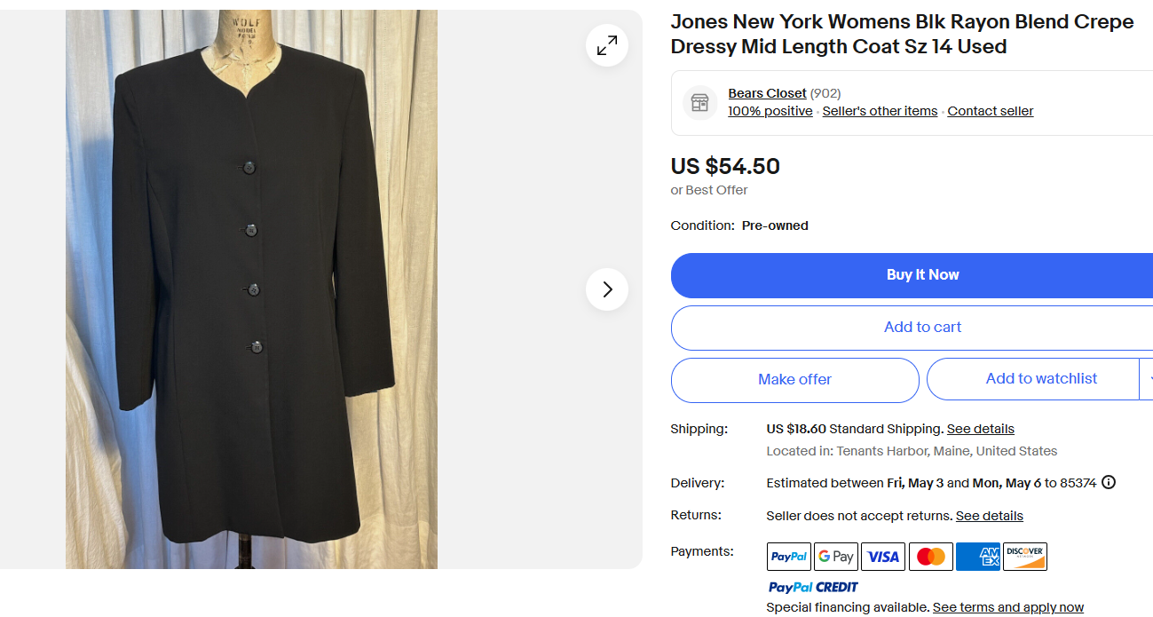 Jones New York Womens Blk Rayon Blend Crepe Dressy Mid Length Coat Sz 14 Used | eBay