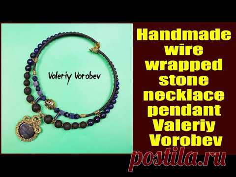 Handmade wire wrapped stone necklace pendant. Handmade wire jewelry Valeriy Vorobev.