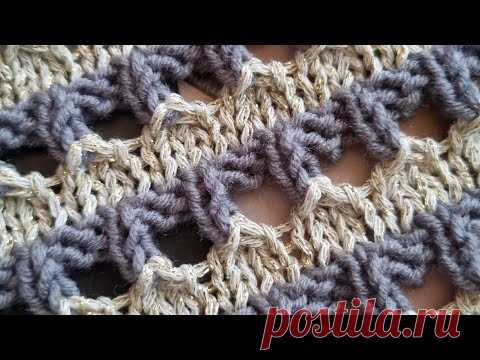 Двухцветная рельефная сеточка спицами🧶 для стильных джемперов ❤️👚knitting pattern.