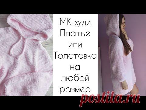 Худи спицами на любой взрослый или детский размер||Кофта/платье с капюшоном спицами на любой размер