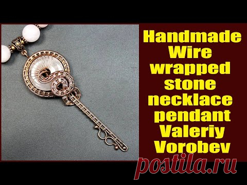Handmade wire wrapped stone necklace pendant Valeriy Vorobev. Handmade wire wrap jewelry.