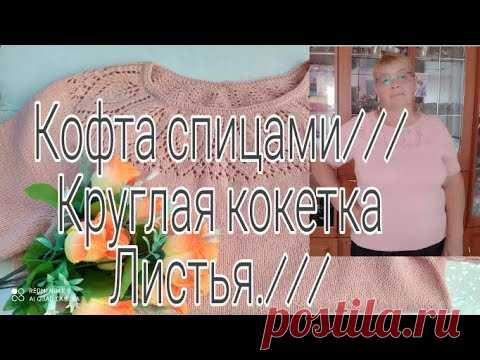 КОФТА СПИЦАМИ///КРУГЛАЯ КОКЕТКА "ЛИСТЬЯ"