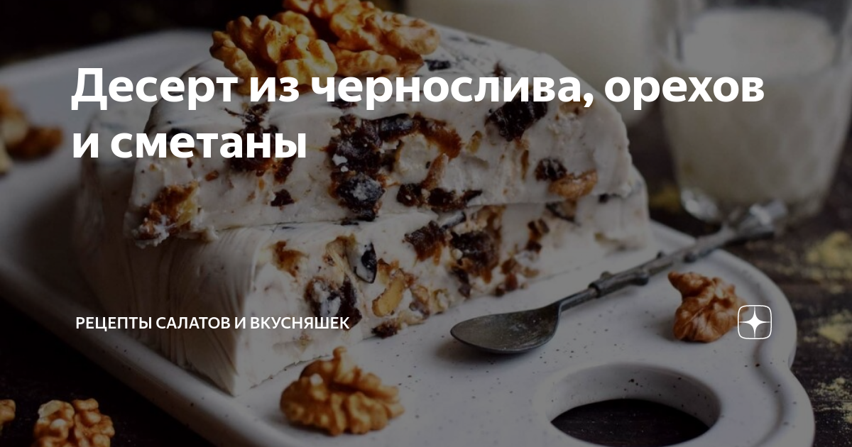 Десерт из чернослива, орехов и сметаны Статья автора «Рецепты салатов и вкусняшек» в Дзене ✍: Готовим очень вкусный десерт из чернослива и орехов. В качестве основы берем сметану, для получения желейного состояния, соединяем ее с желатином.