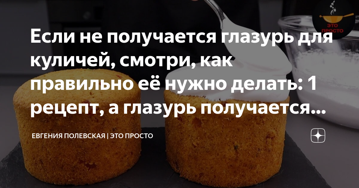 Если не получается глазурь для куличей, смотри, как правильно её нужно делать: 1 рецепт, а глазурь получается разной (3 варианта) Статья автора «Евгения Полевская | Это просто» в Дзене ✍: Глазурь - это неотъемлемая часть пасхальной выпечки.
