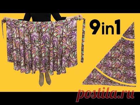 Разрезать за 5 минут! Носите в 9 разных стилях! Как блузка, платье! Очень легко сшить юбку с запахом