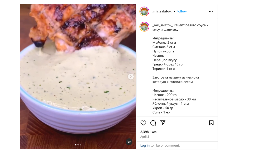 Салаты|Закуски | Рецепт белого соуса к мясу и шашлыку Ингредиенты: Майонез 3 ст л Сметана 3 ст л Пучок укропа Чеснок Перец по вкусу Грецкий орех 10… | Instagram