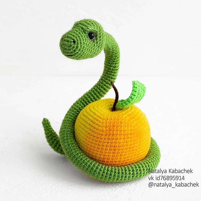 Змейка на яблоке крючком. Амигуруми схемы и описания. Автор: Наталья Кабачек | IRINELY.ART