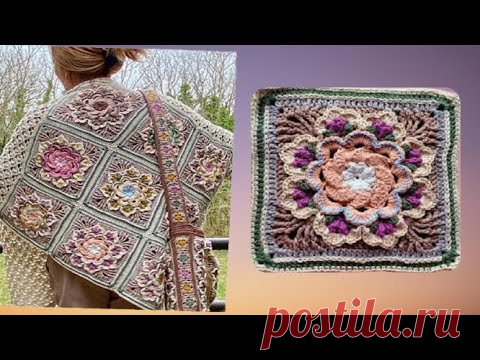 GRANNY SQUARE A CROCHET - FLOR ARCOÍRIS 3D