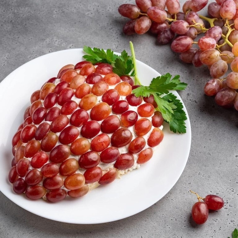 4. Слой - половинки ягод винограда, разложенные в виде черепицы.