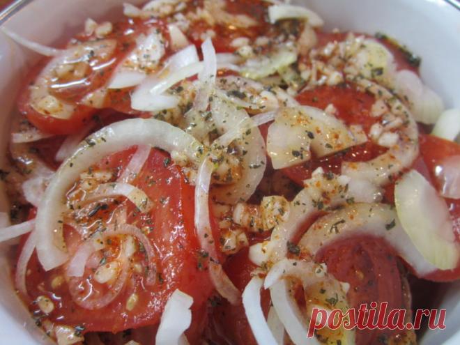 Просто изумительная закуска к шашлыку. Через 2 дня после приготовления вы получите невероятно ароматную, сочную и вкусную закуску. Список ингредиентов: Репчатый лук – 1 шт Томаты – пол