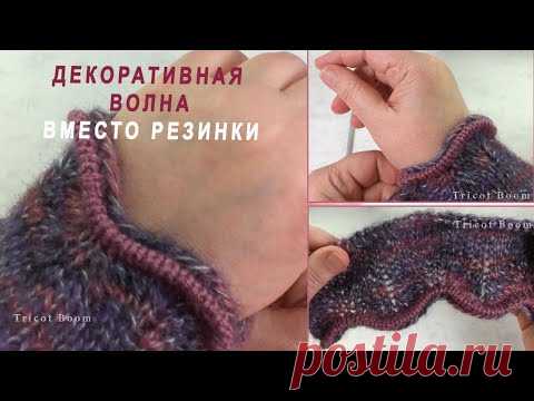 Декоративная волна внизу детали вместо резинки. Вязание спицами.