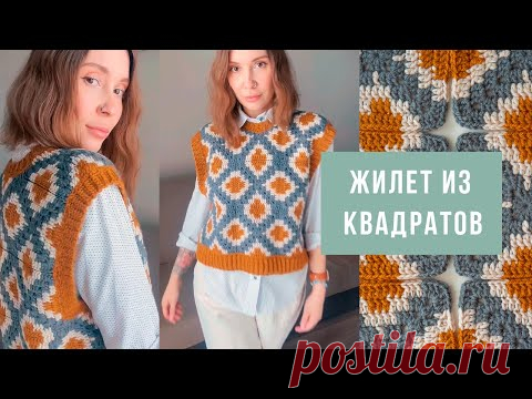 ВСЕ ХОТЯТ ТАКУЮ ЖЕ!💛ПОТРЯСАЮЩАЯ ЖИЛЕТКА ИЗ КВАДРАТОВ КРЮЧКОМ💛 | техника жаккард