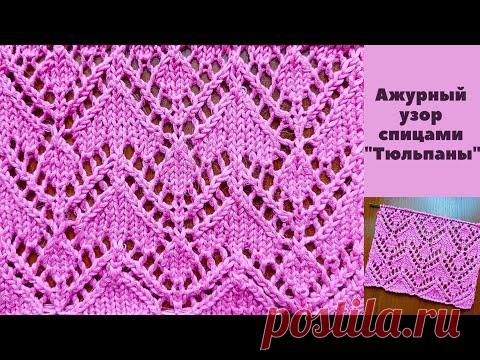 🌷🌷🌷Очаровательный ажурный узор ''Тюльпаны" + схема. Knitting a beautiful pattern "Tulips" + scheme.