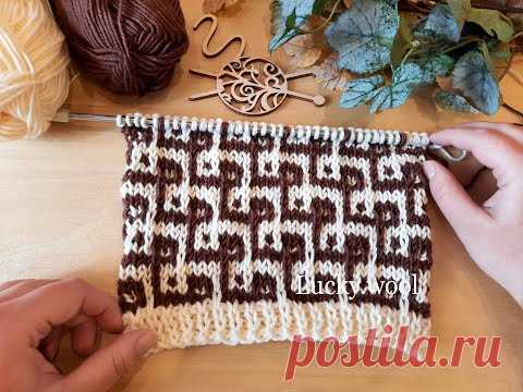 Вяжем ленивый жаккард "Диагональный орнамент" спицами.