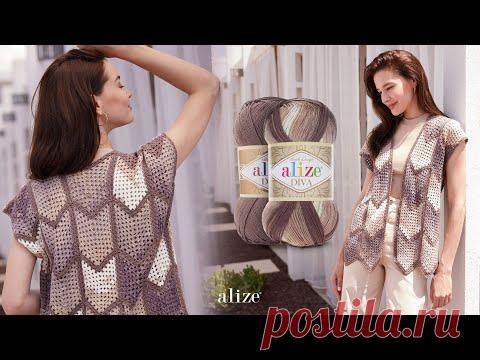 Жилет с мотивом крючком от Alize Diva и Diva Batik