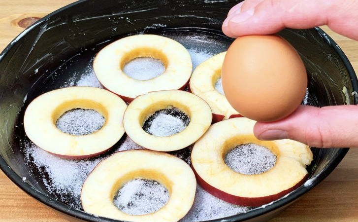 Пирог с тестом из одного яйца. Заливаем начинку из яблок и готовим без духовки